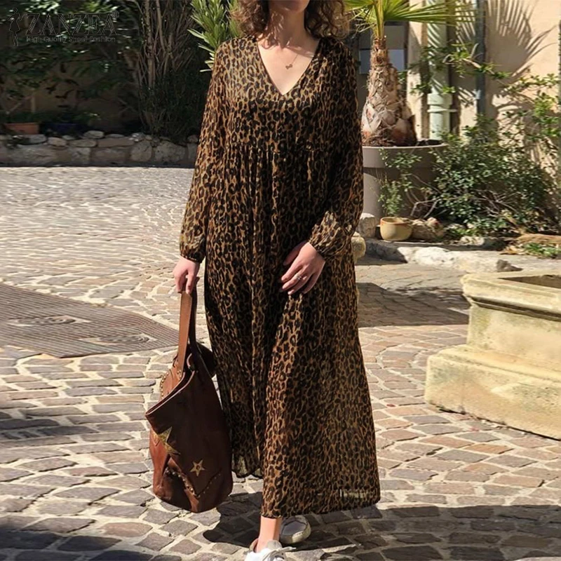 Best Dress from ZANZEA Apparels Store for Robe 5XL Maxi-Dress Leopard Print Beach-Long Women's Summer Vestidos Sexy Fashion V-Neck