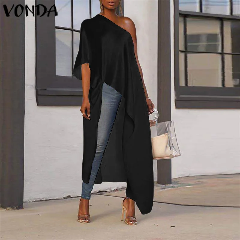 Name: Sexy Tops Shirts Long Blouse Oversized Irregular Blusas VONDA Off-One-Shoulder Women's