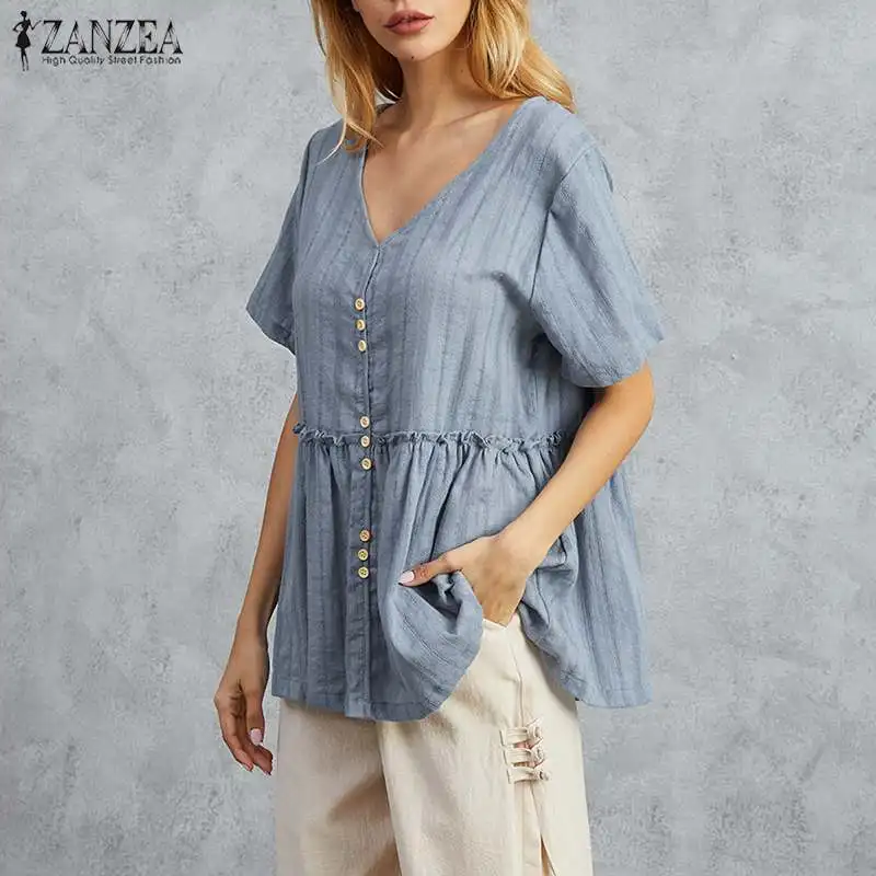 Best Blouses & Shirts from ZANZEA Apparels Store for Linen Blouse Short-Sleeve Summer Tops Solid-Tunic Zanzea Fashion Plus-Size 5XL Stylish