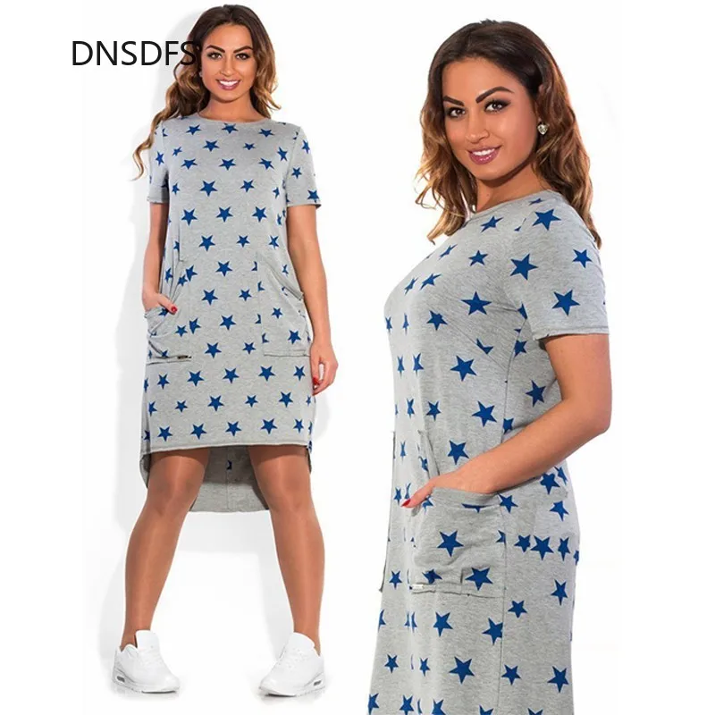 Name: Women Dress Summer Party Cotton Casual Five Short-Sleeve Pocket O-Neck Irregular Vestidos