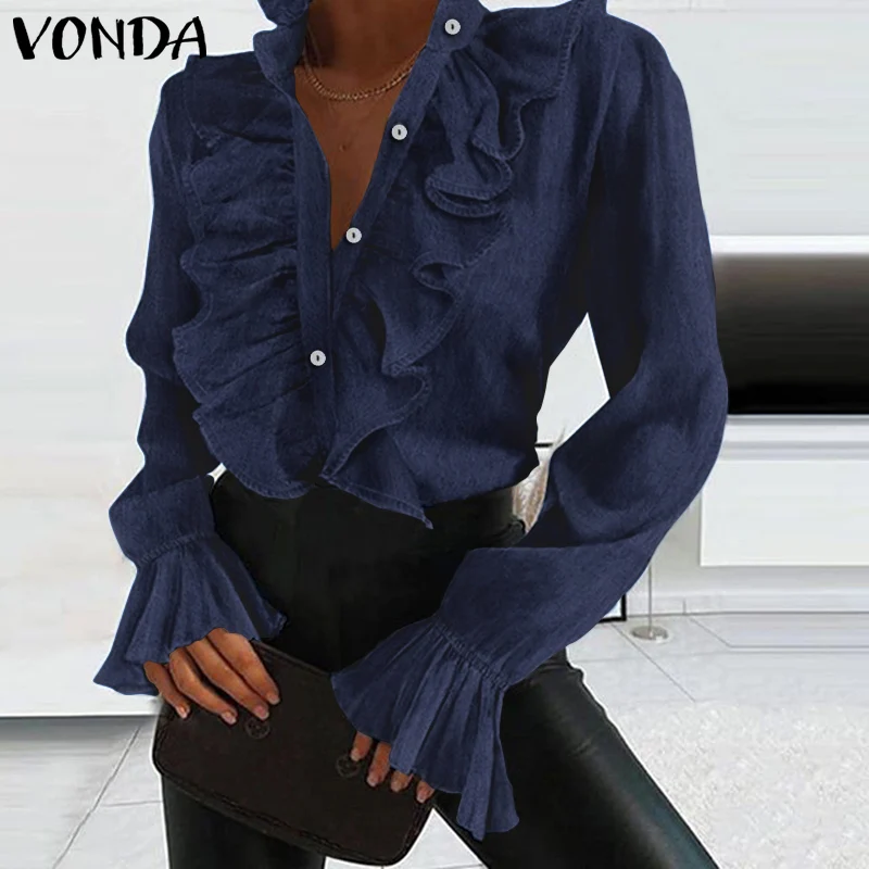Name: Shirts Women Blouses Flare-Sleeve VONDA Ladies Casual-Tops Blusas Work Loose Elegant